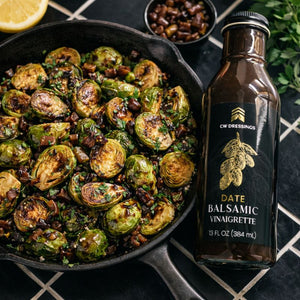 Roasted Brussels Sprouts with Date Balsamic Vinaigrette